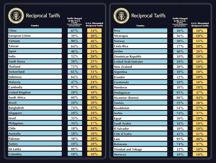 અમેરિકાના રાષ્ટ્રપતિ ડોનાલ્ડ ટ્રમ્પે આખરે 2 એપ્રિલ (અમેરિકન સમય મુજબ) વિશ્વના તમામ દેશો પર પારસ્પરિક ટેરિફ લાદ્યા. ટ્રમ્પે ભારત પર 26 ટકા ટેરિફ લાદ્યો છે, જ્યારે તેમણે પોતાના સૌથી મોટા હરીફ ચીન પર 34 ટકા ટેરિફ લાદ્યો છે. ડોનાલ્ડ ટ્રમ્પે વ્હાઇટ હાઉસમાં ભાષણ દરમિયાન પારસ્પરિક ટેરિફ માટેની યોજનાની જાહેરાત કરી. દેશોના એક જૂથ પર યુનાઇટેડ સ્ટેટ્સ પર વસૂલવામાં આવતા દર કરતા લગભગ અડધા દરે ટેરિફ લાદવામાં આવ્યા છે. આ પ્રસંગે ટ્રમ્પે કહ્યું કે આ અમેરિકન ઇતિહાસના સૌથી મહત્વપૂર્ણ દિવસોમાંનો એક છે; આ આપણી આર્થિક સ્વતંત્રતાની ઘોષણા છે. વર્ષોથી, મહેનતુ અમેરિકન નાગરિકોને બાજુ પર બેસવાની ફરજ પાડવામાં આવતી હતી, પરંતુ હવે આપણો સમૃદ્ધિનો સમય છે.