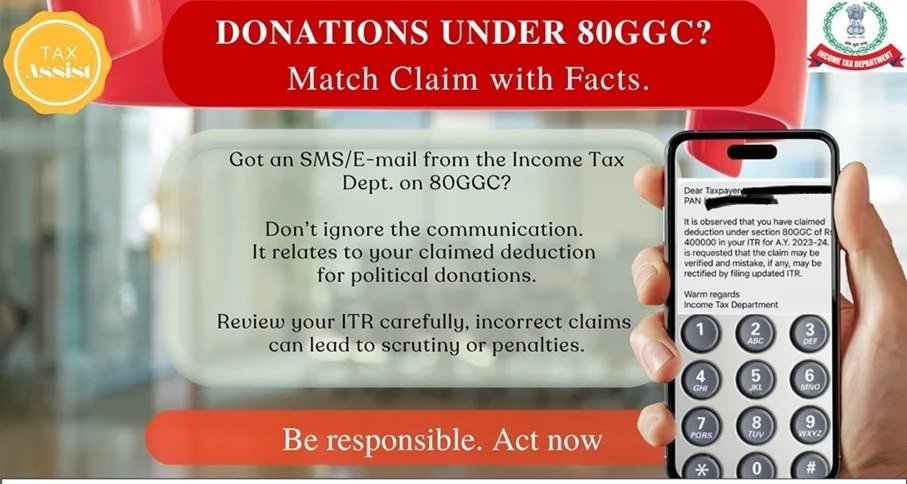 દેશના કરોડો કરદાતાઓને રાહત આપવા માટે આવકવેરા વિભાગે TAXASSIST શરૂ કર્યું છે. તેની મદદથી, રિટર્ન ફાઇલ કરનારાઓ સરળતાથી તેમના પ્રશ્નોનો ઉકેલ મેળવી શકે છે અને રિટર્ન ફાઇલ કરી શકે છે. નવીનતમ પહેલ સમજાવતા, આવકવેરા વિભાગે જણાવ્યું હતું કે ટેક્સએસિસ્ટનો પ્રારંભ કર સંબંધિત તમામ ચિંતાઓને સરળ બનાવવા માટે રચાયેલ છે. આવકવેરા વિભાગે એક ઉદાહરણ દ્વારા સમજાવ્યું કે કલમ 80GGC હેઠળ કર મુક્તિનો દાવો કરતા કરદાતાઓને કઈ પરિસ્થિતિઓમાં સમસ્યાઓનો સામનો કરવો પડી શકે છે.