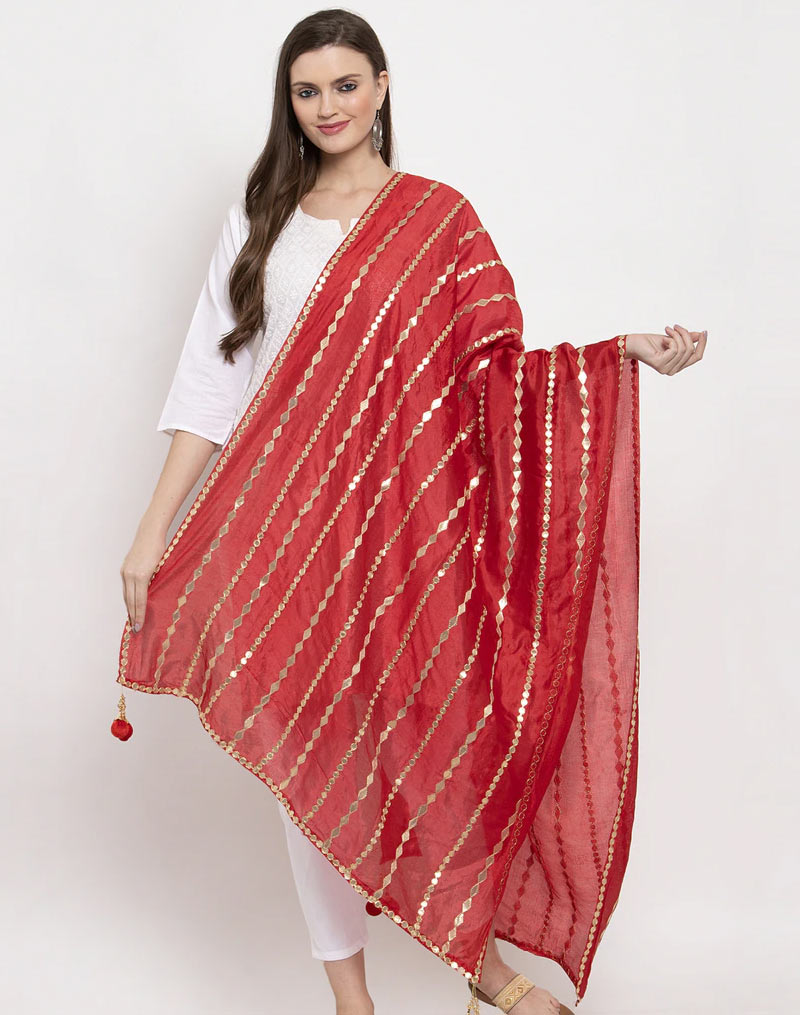 ગોટા-પટ્ટીની ડિઝાઇન આજકાલ ખૂબ જ ટ્રેન્ડમાં છે. જો તમે ઇચ્છો તો, તમે તમારી પસંદગીના લેસને કસ્ટમાઇઝ કરીને જૂના સાદા દુપટ્ટામાં ફીટ કરી શકો છો. દૃષ્ટિની રીતે, આ પ્રકારના દુપટ્ટા ખૂબ જ ફેન્સી દેખાવ આપવાનું કામ કરે છે. સંપૂર્ણ દુપટ્ટા માટે, તમે માત્ર કિનારી પર જ નહીં, પરંતુ સમગ્ર દુપટ્ટામાં આ રીતે લેસ લગાવી શકો છો.