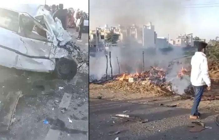 ગુજરાતના જૂનાગઢમાં એક માર્ગ અકસ્માતમાં સાત લોકોના મોત થયા છે. અહીં તેજ ગતિએ બે કાર સામસામે અથડાઈ અને એક કારમાં બેઠેલા પાંચેય લોકોના મોત થયા. તે જ સમયે બીજી કારમાં મુસાફરી કરી રહેલા બે લોકોએ જીવ ગુમાવ્યો હતો. કાર ચાલકે કાબૂ ગુમાવ્યો હતો. આવી સ્થિતિમાં સ્પીડમાં આવતી કાર ડિવાઈડર ઓળંગીને બીજી લેનમાં ગઈ અને સામેથી આવતી કાર સાથે અથડાઈ હતી. આ ટક્કર બાદ બંને કારના ટુકડા થઈ ગયા હતા.