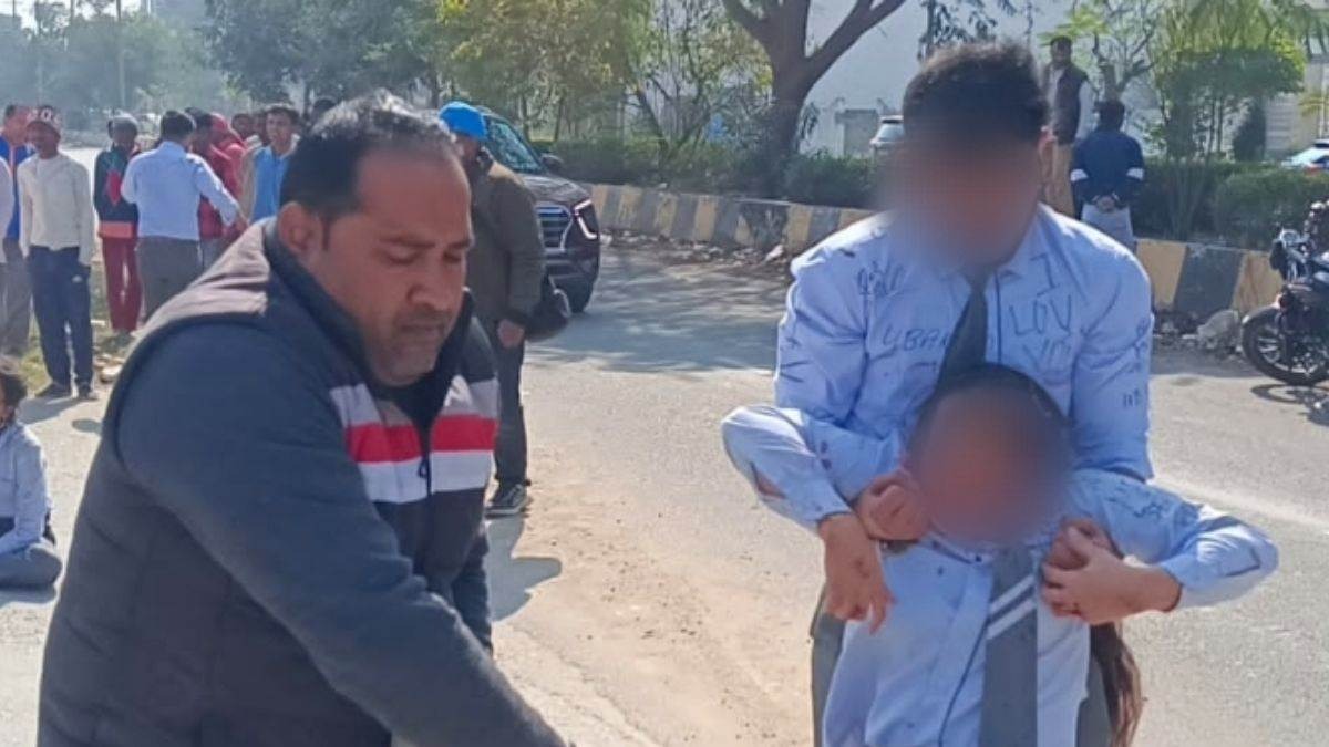 શુક્રવારે શહેરમાં એક દુ:ખદ અકસ્માતનો કિસ્સો પ્રકાશમાં આવ્યો. અહીં, રસ્તાની કિનારે ઉભેલી વિદ્યાર્થિનીઓને તેજ ગતિએ આવતી બલેનો કારે ટક્કર મારી હતી. કારે પાંચ સ્કૂલની છોકરીઓને એટલી જોરથી ટક્કર મારી કે તેઓ કાર સાથે લાંબા અંતર સુધી ખેંચાઈ ગઈ અને દૂર ફેંકાઈ ગઈ. બધા વિદ્યાર્થીઓને ઘાયલ હાલતમાં હોસ્પિટલમાં દાખલ કરવામાં આવ્યા છે. આમાંથી એક વિદ્યાર્થીની હાલત ગંભીર હોવાનું કહેવાય છે. પોલીસે આરોપી કાર ચાલકને કસ્ટડીમાં લીધો છે. આ ઘટનાના સીસીટીવી ફૂટેજ પણ સામે આવ્યા છે.