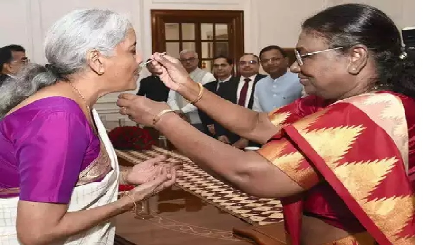 નાણામંત્રી નિર્મલા સીતારમણ નાણા મંત્રાલયથી રાષ્ટ્રપતિ ભવન પહોંચ્યા. નાણામંત્રીએ રાષ્ટ્રપતિ ભવનમાં રાષ્ટ્રપતિ દ્રૌપદી મુર્મુને મળ્યા અને તેમને બજેટમાં મહત્વપૂર્ણ જોગવાઈઓ અને ફેરફારો વિશે માહિતી આપી. આ એક પરંપરા છે, જેમાં રાષ્ટ્રપતિની મંજૂરી લેવામાં આવે છે. રાષ્ટ્રપતિએ નાણામંત્રીને દહીં અને ખાંડ ખવડાવીને તેમનું મોઢું મીઠું કરાવ્યું. અમે સાથે નાસ્તો પણ કર્યો.