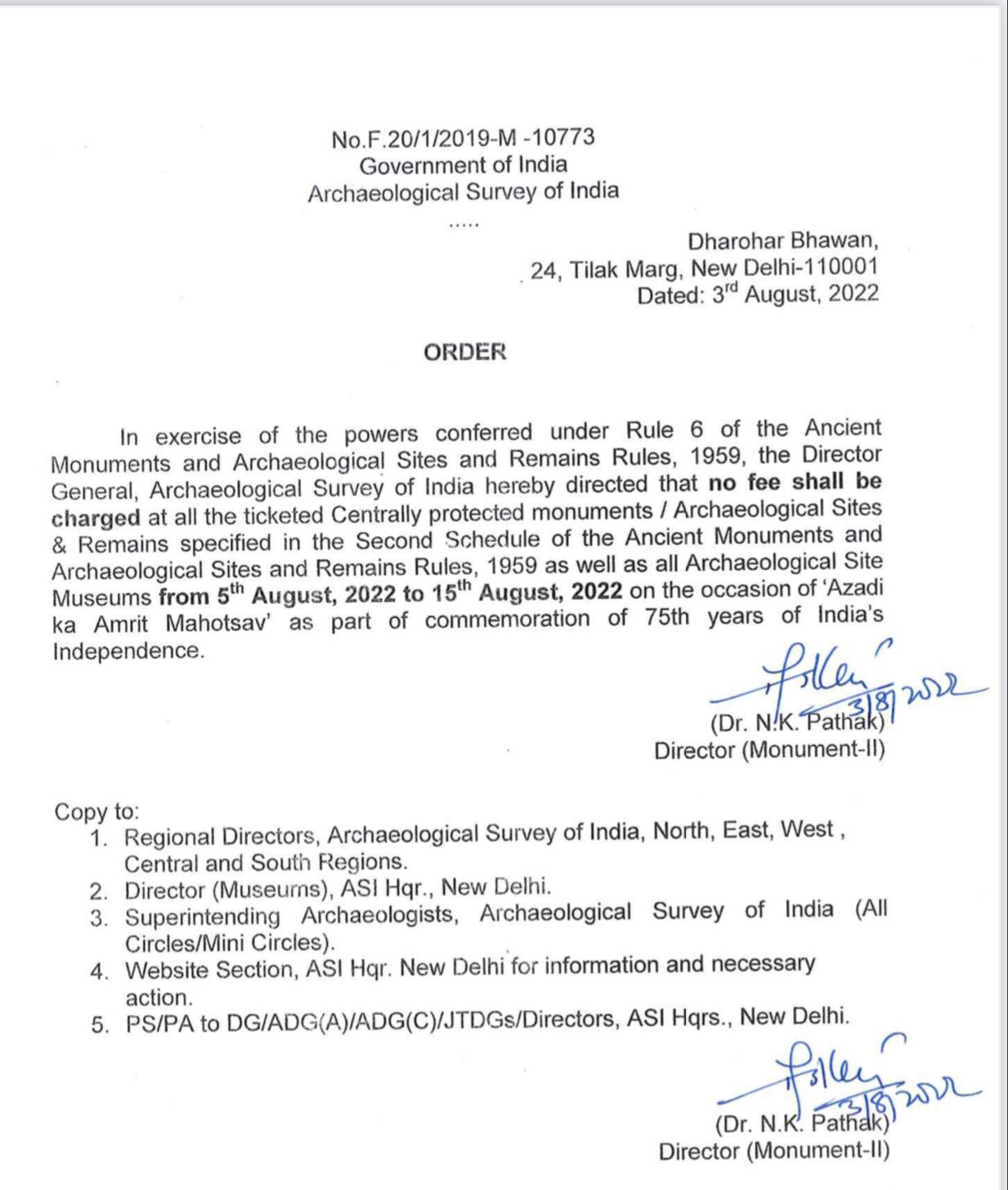 દેશના તમામ ઐતિહાસિક સ્મારકોમાં કોઈ ટિકિટ નહીં લાગે