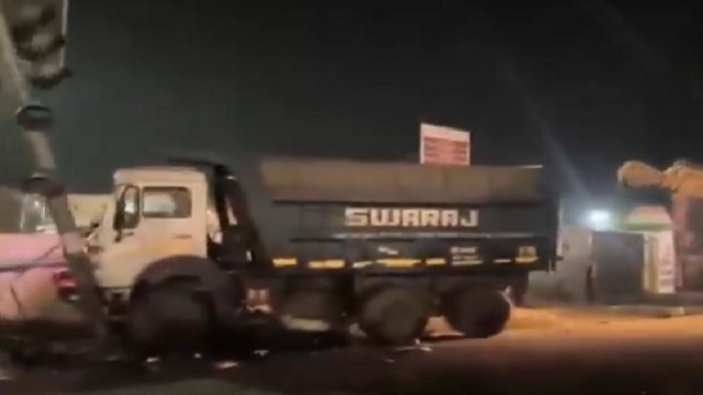 આજે રામનગરીમાં સૌથી સુરક્ષિત સ્થળ ગણાતા લતા મંગેશકર ચોક પર ગતિએ ભારે તબાહી મચાવી છે. મંગળવારે રાત્રે, એક ઝડપથી જઈ રહેલા ડમ્પરે કાબુ ગુમાવ્યો અને પહેલા પોલીસ બેરિયર સાથે અથડાયું, પછી ઇલેક્ટ્રિક થાંભલો તોડીને ફૂટપાથ પર ચઢી ગયું. અકસ્માત એટલો ભયાનક હતો કે ફૂટપાથ પર ઉભેલા ઘણા લોકો ડમ્પરની ટક્કરે અથડાઈ ગયા.