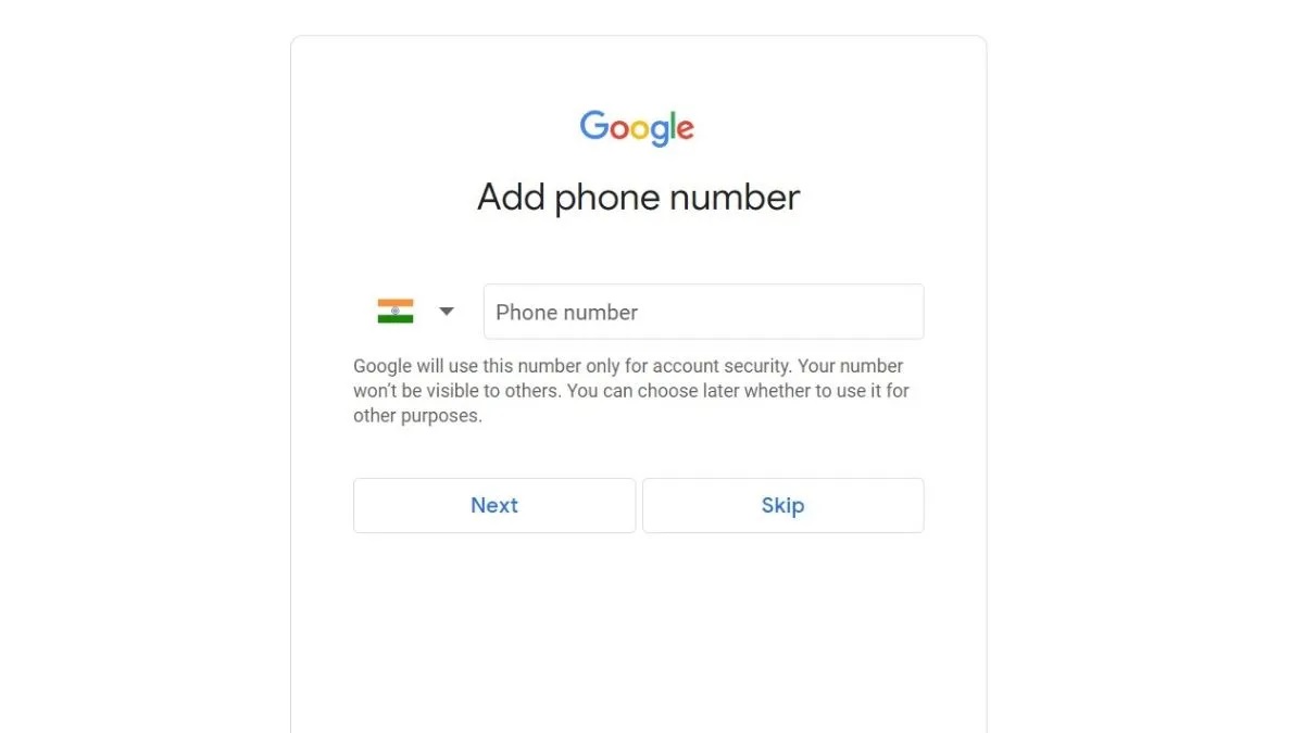સ્ટેપ 8: આ પછી ફોન નંબર ઉમેરવાનો વિકલ્પ દેખાશે. જો તમે ઈચ્છો, તો તમે ફોન નંબર દાખલ કરી શકો છો અથવા આગળ જઈ શકો છો.