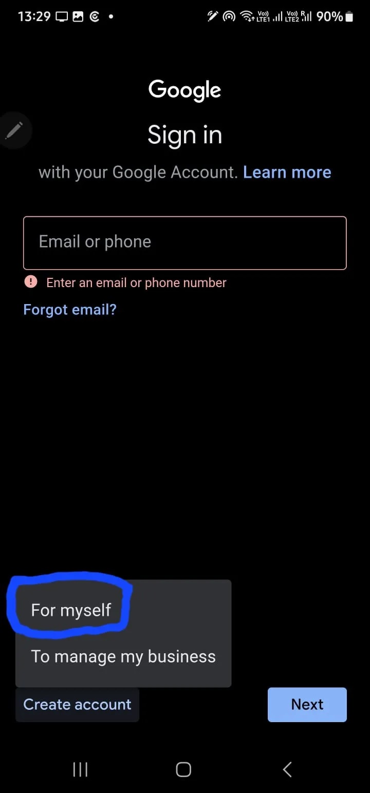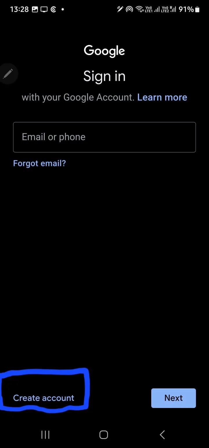 સ્ટેપ 2: આ પછી અહીં ‘ક્રિએટ એકાઉન્ટ’ વિકલ્પ પર ટેપ કરો. જો તમે તમારા Gmail એકાઉન્ટમાં સાઇન ઇન છો અને નવું એકાઉન્ટ